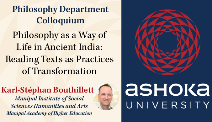 All are invited to a Philosophy Colloquium Talk on Thursday 20th November at 13:30 in AC01 LR105 by Karl-Stéphan Bouthillette, titled "Philosophy as a Way of Life in Ancient India: Reading Texts as Practices of Transformation."