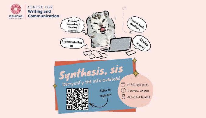 This workshop by the Centre of Writing and Communication introduces students to academic synthesis, a method that builds transferable skills to actively process multiple texts in tandem, and substantiate their argument. Focusing on simulating a student’s day-to-day study material, including lectures, reading texts, and other secondary data, it will prompt students to connect multimodal resources and move beyond summarising, towards an original act of creation. Through a proposed framework that enables the recording, analysing and interacting of sources, the workshop attempts to train students to contend with the oft-overwhelming volume of study material while also enriching their own insights.