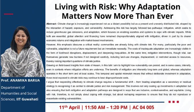 Dear All, The Department of Environmental Studies cordially invites you to a guest lecture on Saturday, 11th April 2026. Title: Living with Risk: […]