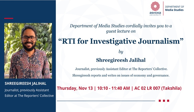Dear all, Media Studies Department cordially invites you for a Guest Lecture by Shreegireesh Jalihal, Journalist, previously Assistant Editor at The Reporters’ Collective. Title of […]